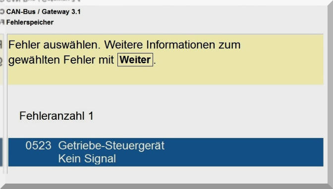 Kann der Fehlerspeicher noch ausgelesen werden, werden im Gateway so ziemlich alle