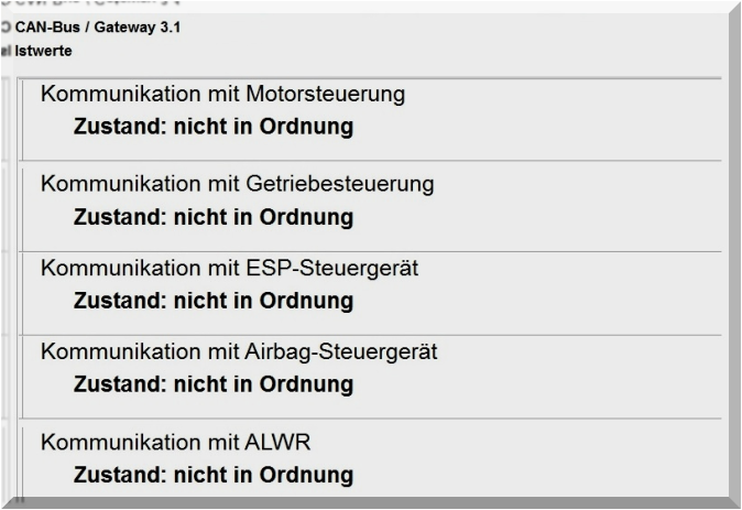 Steuergeräte ohne Kommunikation auftauchen. Bzw. können im Gateway die Ist-Werte geprüft