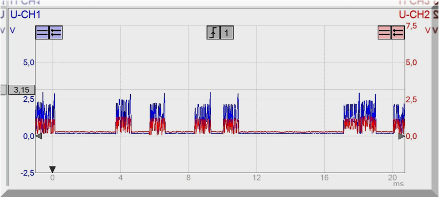 Dabei wird der Bus mit dem Oszilloskop beobachtet, bis sich das Signal wieder verbessert.