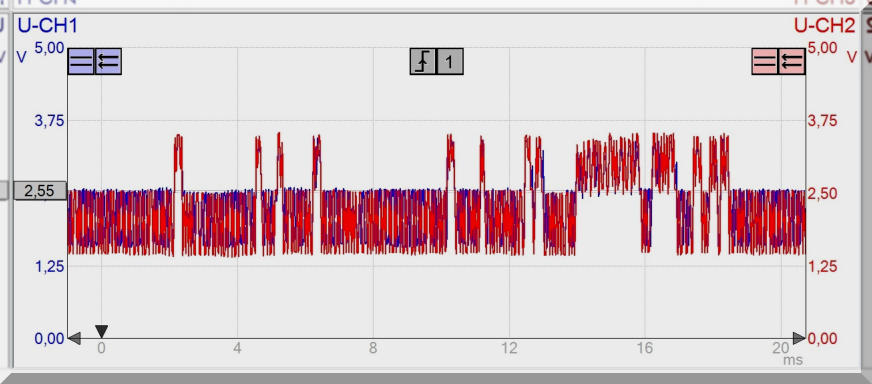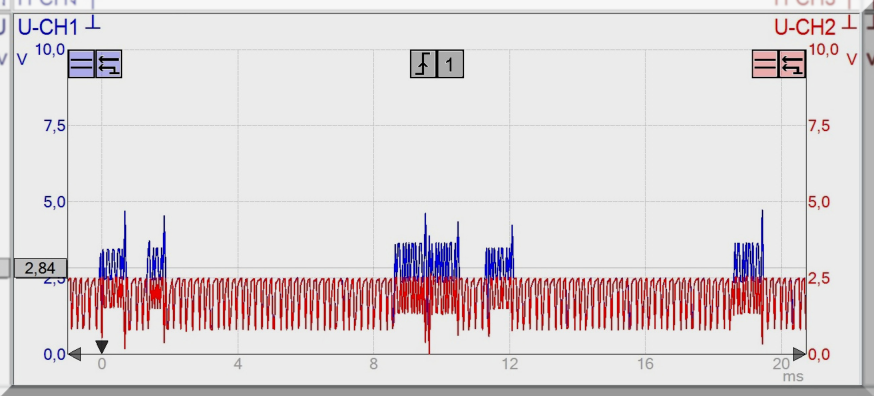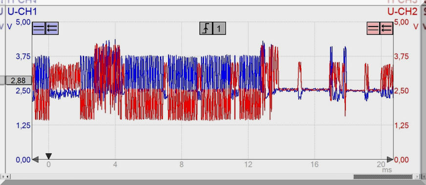 Beispiel Auswertung: Laufen die Signale synchron, ist das Steuergerät defekt. Bei defekter Leitung