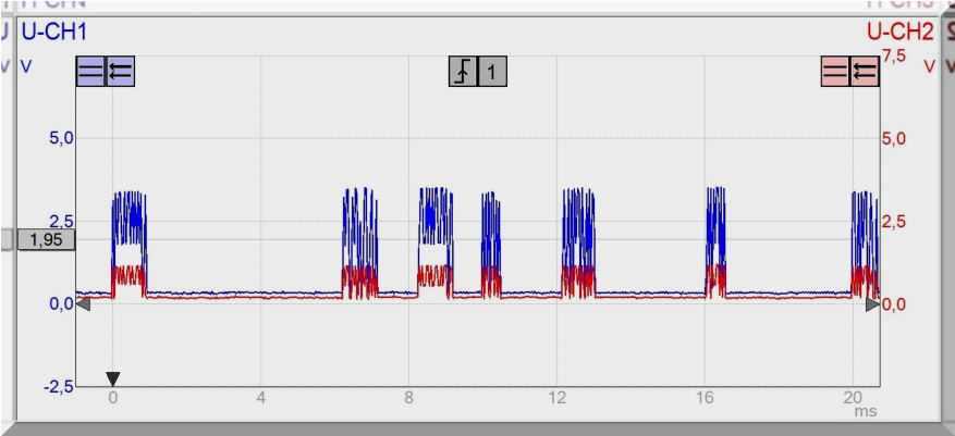 0 V an, auf Can-High sind noch Signale zu erkennen. Daraus ergibt sich eine Spannungsdifferenz,