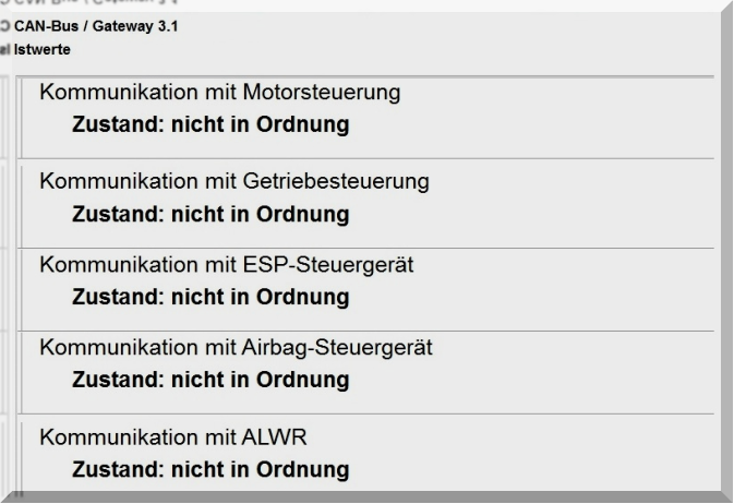 Steuergeräte ohne Kommunikation auftauchen. Bzw. können im Gateway die Ist-Werte geprüft