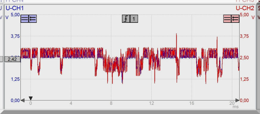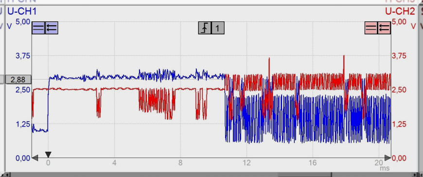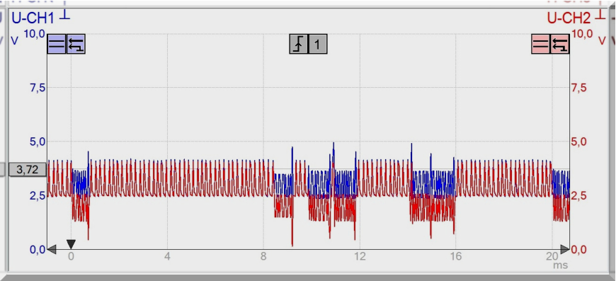 Beispiel Auswertung: Laufen die Signale synchron, ist das Steuergerät defekt. Bei defekter Leitung