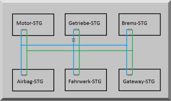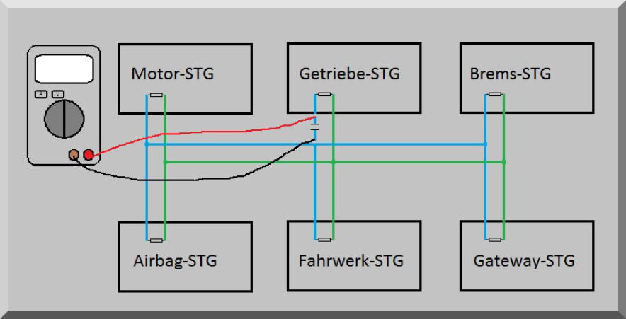 System trennen und wie im Beispiel prüfen. 0 Ohm Leitung i.O. - Steuergerät defekt oder ein großer