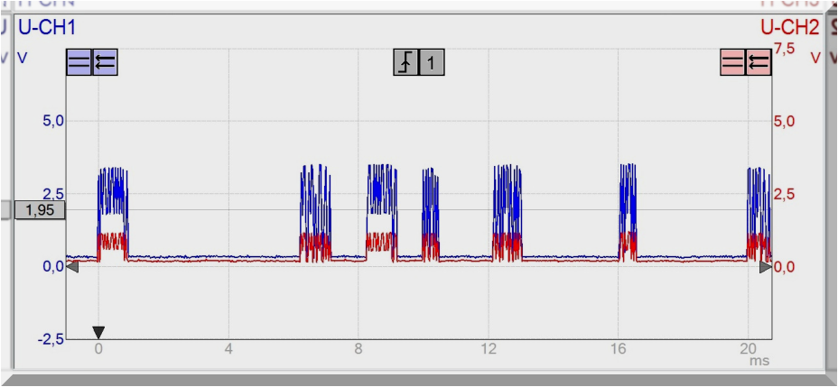 Oszilloskop. Bei Übereinstimmung können Sie dann die jeweilige Fehlersuche auswählen.