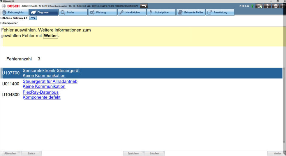 bei Ausfall eine Vielzahl an Fehlerspeichereinträgen abgelegt sein. Beispiel