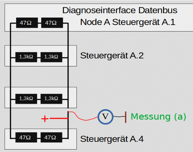 In dem Beispiel wird das Steuergerät A.3 getrennt. der Plussschluss setzt sich weiter in Richtung A.4